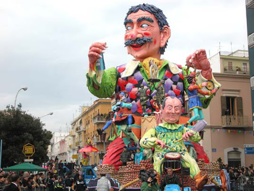 In Puglia il Carnevale non è solo una festa: è un rito collettivo, un momento in cui i paesi si raccontano attraverso la satira, la musica, le maschere e i carri allegorici costruiti con mesi di lavoro artigianale.